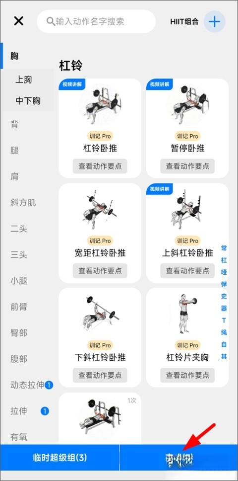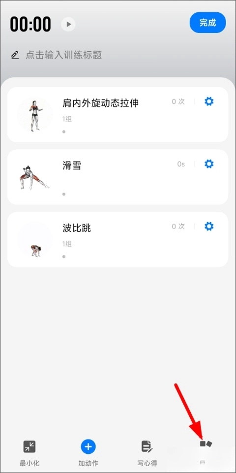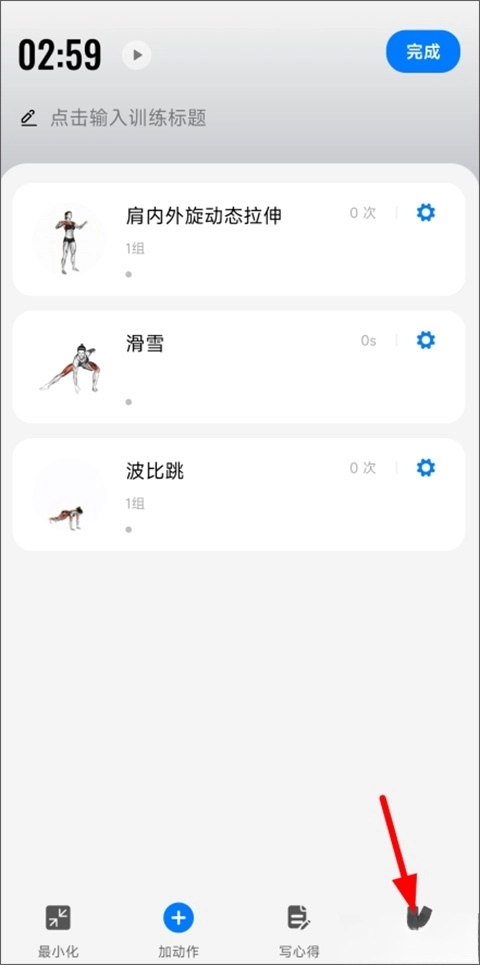 打开动作添加界面后,用户可依据自身锻炼需求挑选合适的锻炼动作,随后点击完成按钮即可。
