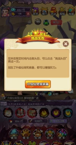 要是在规定时间内没能击败boss,系统就会自动让玩家回到上一层关卡继续刷怪,直到玩家主动点击挑战boss为止。