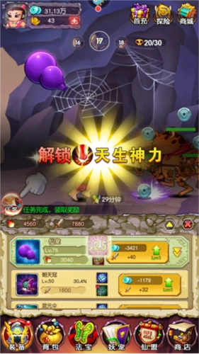 这个时候仙洞就能派上用场了。游戏里有3个仙洞,分别是金银仙洞、镀金仙洞和灵石仙洞,它们的产出各有不同,金银仙洞提供银币加成,镀金仙洞带来镀金守护加成,灵石仙洞则是原石加成。仙洞的产出需要依靠妖宠驻守,妖宠的等级和品质越高,产出就越多。另外仙洞还能升级,升级后可以获取更多资源,这对提升战力、冲关都有很大帮助。