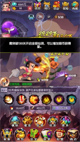 在挑战BOSS的过程中,别忘了多使用主动技能哦!这些主动技能能在短时间内大幅提升葫芦娃和仙宠的攻击力,借助这一点就能更轻松地战胜BOSS,继续我们的闯关冒险啦!