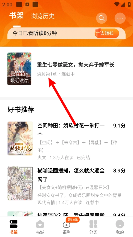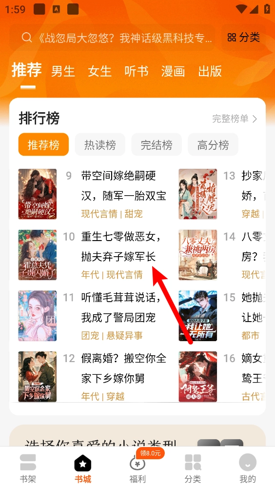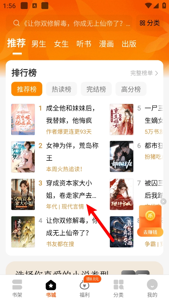 打开软件,在书城选择需要加入书架的小说。