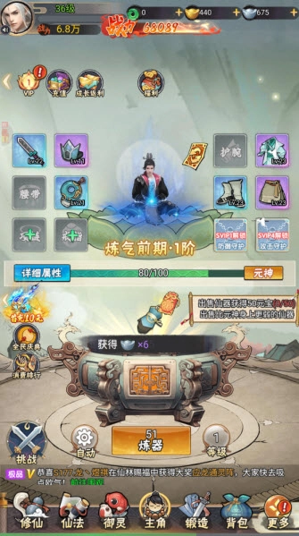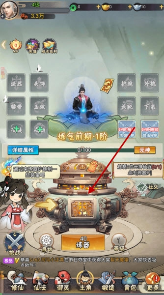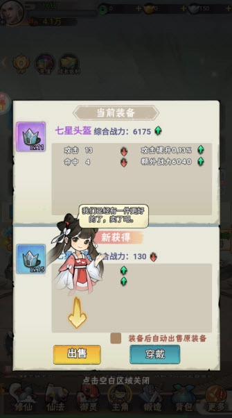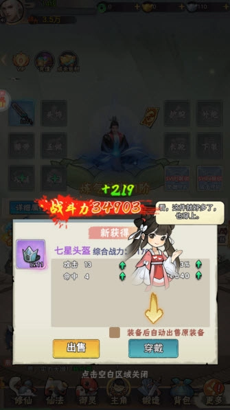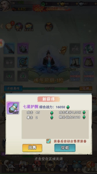 炼制出来的装备点击进行穿戴,可以提升角色属性。