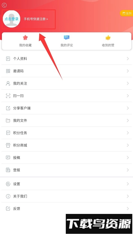 进入个人中心页面后,找到左上角的登录入口并点击,接着选择“手机号快速注册”功能,就能启动个人账户的创建流程了。