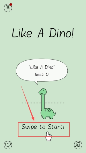进入游戏的操作是:在Like A Dino!的界面中点击“Swipe to Start”。