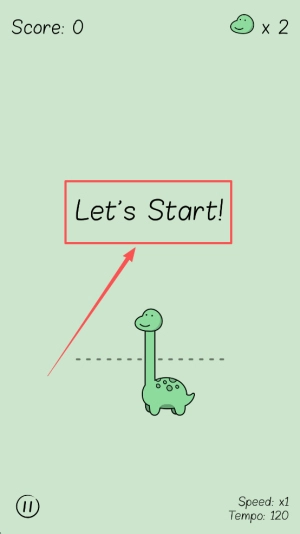 开始演奏的操作步骤:当界面显示“Score:0”时,点击“Let's Start!”按钮即可启动。