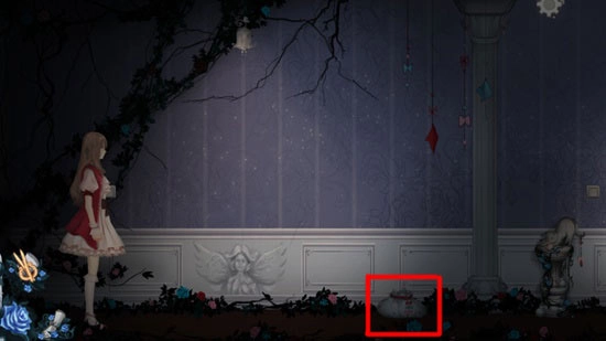 走进玫瑰走廊后,我们先往右边走,右侧地面上有一把钥匙,把它捡起来。