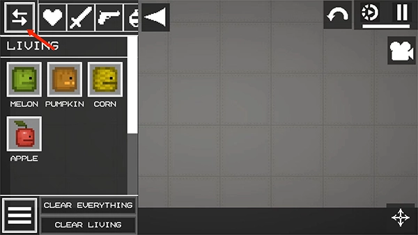 打开melon playground游戏,进入游戏主界面后,点击左上角的【四宫格】图标。