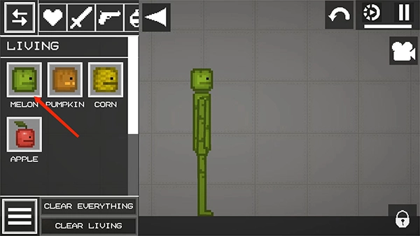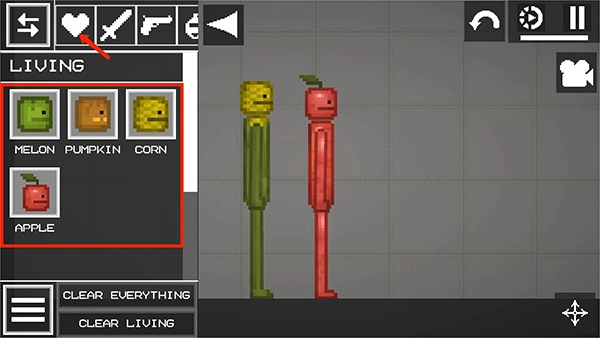 进入菜单界面后,点击【爱心】图标,从中挑选一个人物,接着把它拖放到地面上,这里我们以西瓜人来举例说明。