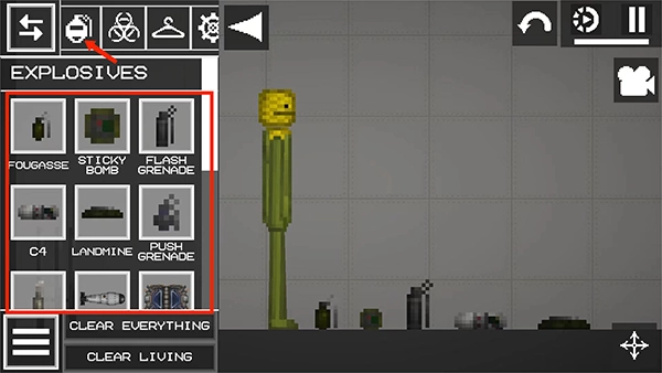选择【手雷】图标,其中涵盖手榴弹、C4、地雷等各类不同的炸弹。