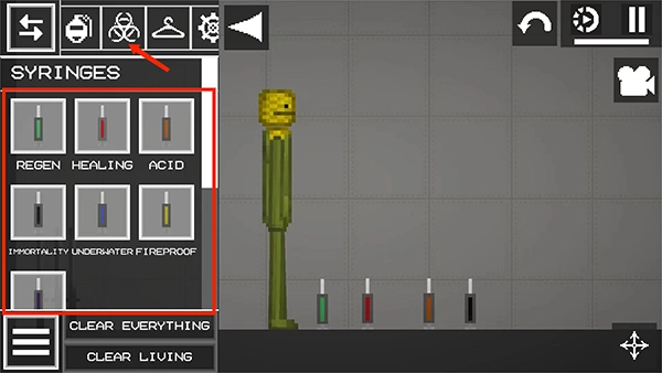 选择【生化】图标,这里面包含了颜色、属性和功能各不相同的药剂。