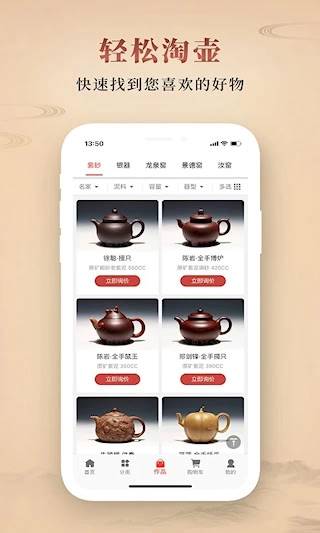 淘壶人是一款聚焦紫砂器具领域,集鉴赏、交易与文化交流功能于一体的手机应用。其核心功能主要包含作品鉴证、在线竞拍和私人洽购三大模块。平台上的每件紫砂作品都附有详尽的作者资料与制作工艺介绍,部分具有重要价值的作品还会提供权威机构出具的鉴定证书。为了让用户更精准地了解作品细节,应用采用高清微距拍摄技术和360度全景展示方式,全方位呈现泥料的质感与手工制作的痕迹,从而切实减少线上鉴赏过程中可能出现的信息误差。