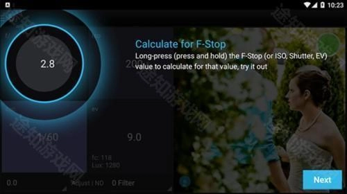 长按(按住)F-Stop(或ISO、Shutter、EV)数值进行计算,之后即可试用该数值。