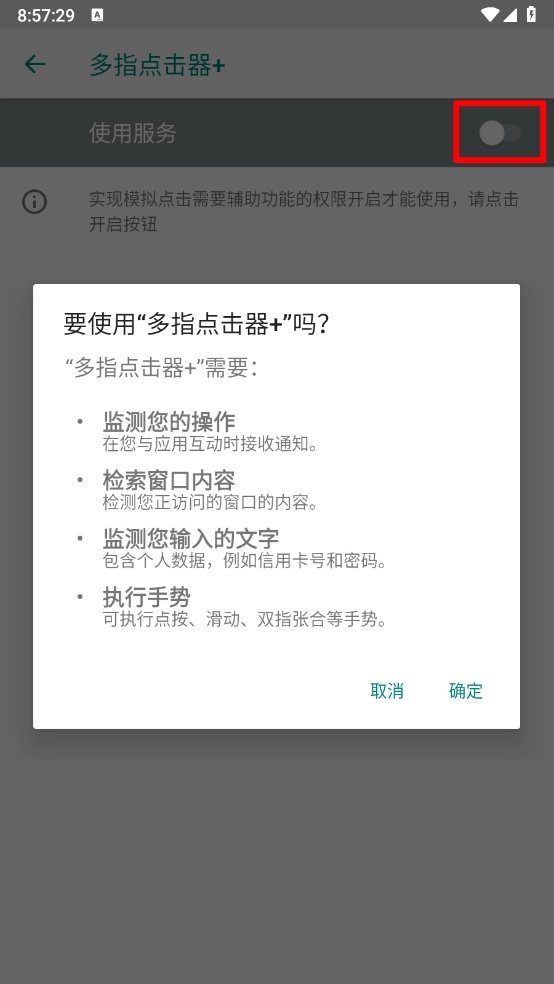 在新的页面打开使用服务的开关,点击"确定"。