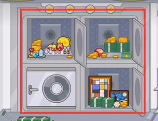 前往银行二楼,找到保险柜后,依次放入钻石、红心、星星和贝壳图标,就能顺利打开宝箱,获取丰厚的珍贵宝藏!