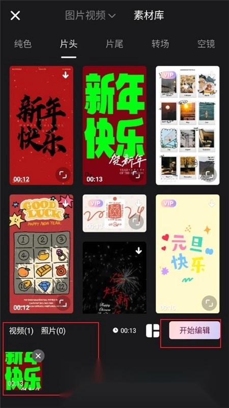 选取需要的视频或照片素材后,点击开始编辑按钮。