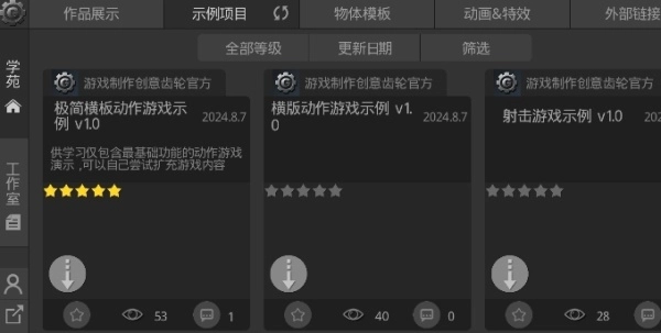 包括示例项目、动画特效等等。