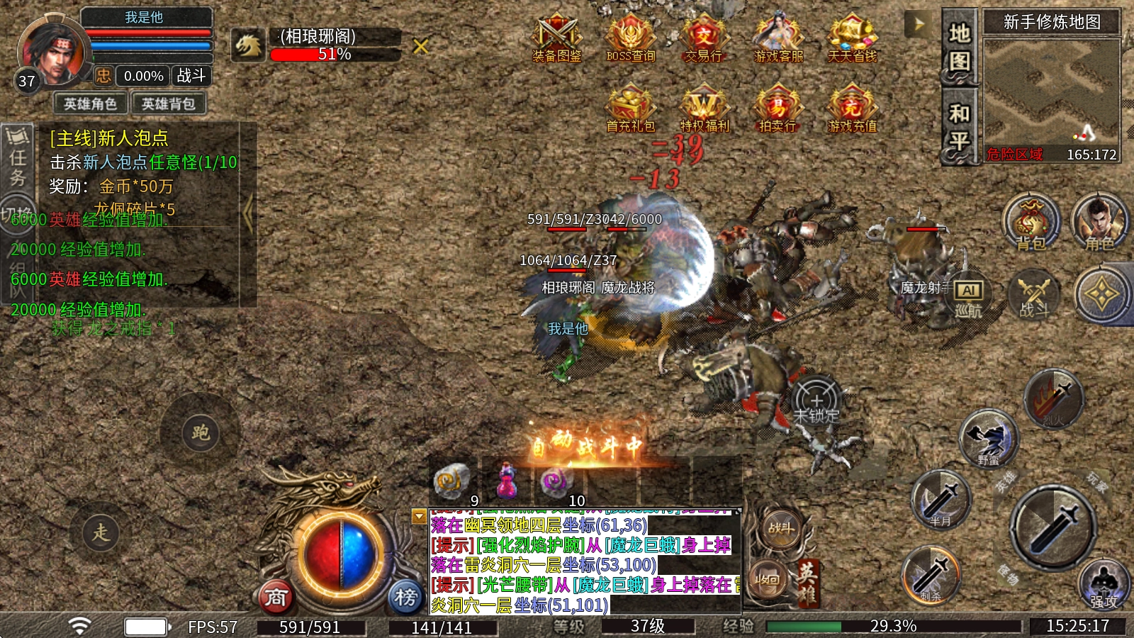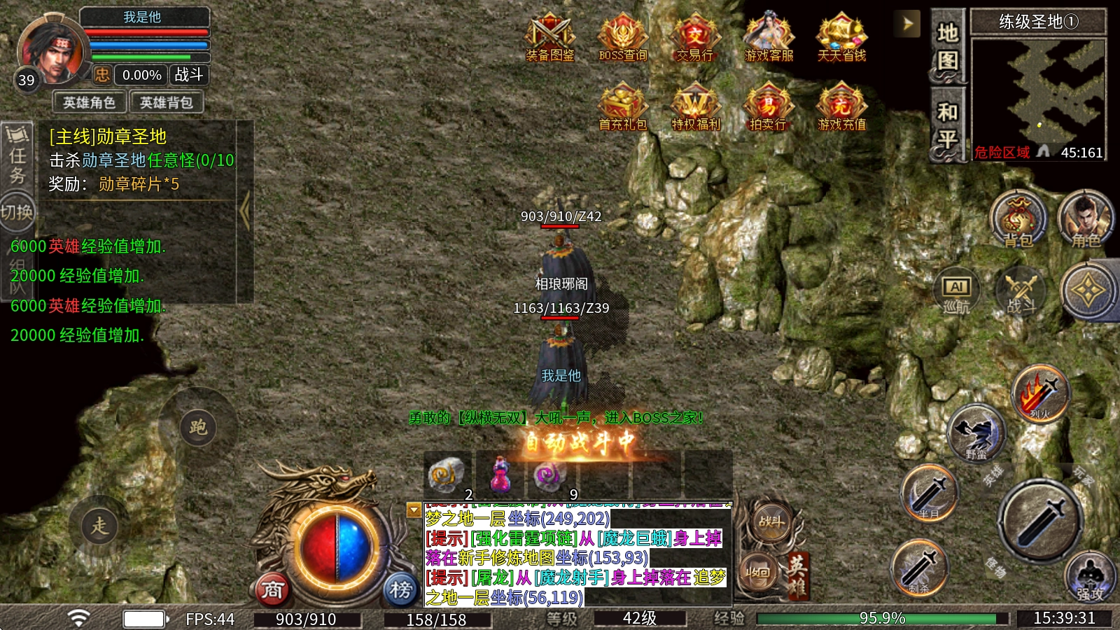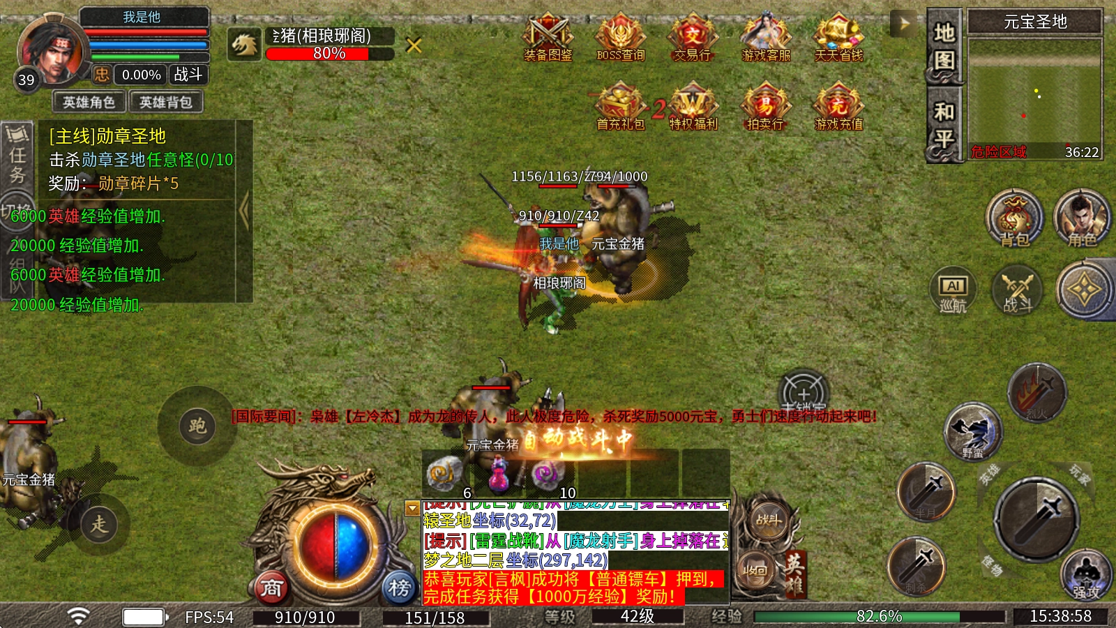 超爽的练级地图在54级前能免费进入,这里会大量刷新经验白野猪,只要击杀它们就能获取海量经验,升级过程超级轻松。