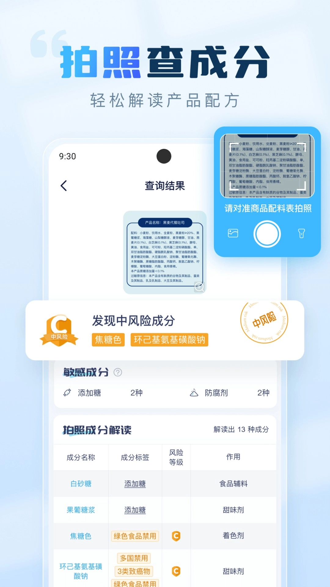 拍摄产品的配料表,成分喵会自动识别并解析出所有成分,还能详细解读每种成分的作用与安全性,既方便又快捷,让你随时随地都能了解所用产品的成分信息。