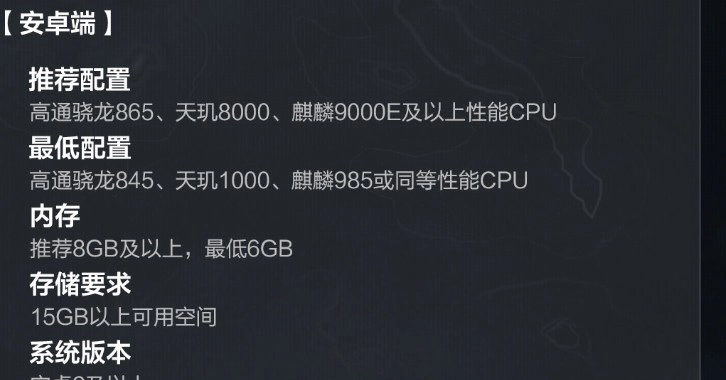 安卓设备支持的处理器型号包括高通骁龙845、天玑1000、麒麟985,或其他同等及以上规格的处理器。