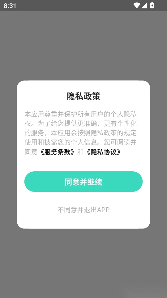 首先打开软件,阅读其中的“隐私政策”,之后点击“同意并继续”按钮进入下一步操作。