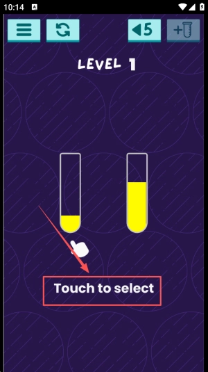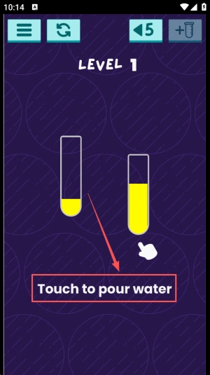学习操作:在关卡界面明确分类目标,点击“Touch to pour water”来倾倒液体。