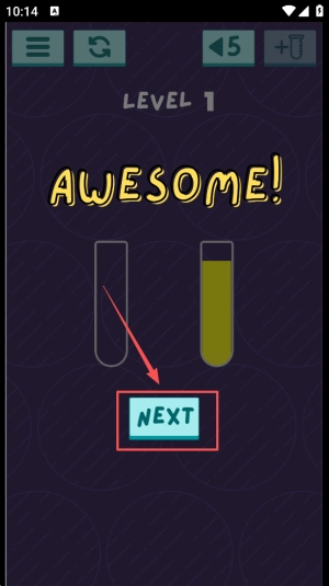 继续通关的方法是:当界面上显示出“AwEsome!”的提示时,只要点击“NEXT”按钮,就能顺利进入下一关了。