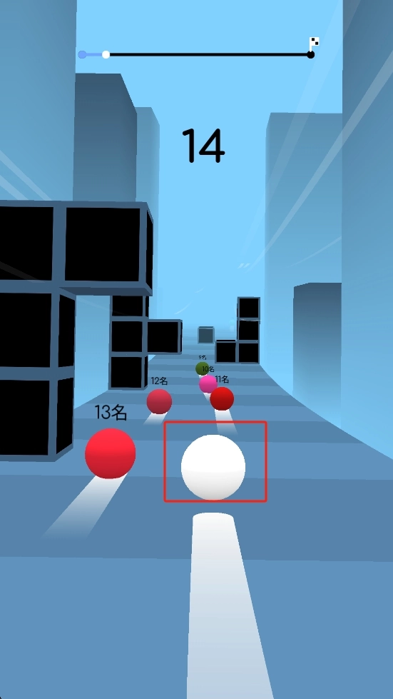 我们点击白色圆球来启动,沿着直线赛道一路前进,灵活地避开途中的黑色障碍,超越前方的彩色球体,朝着终点的旗帜全力冲刺。
