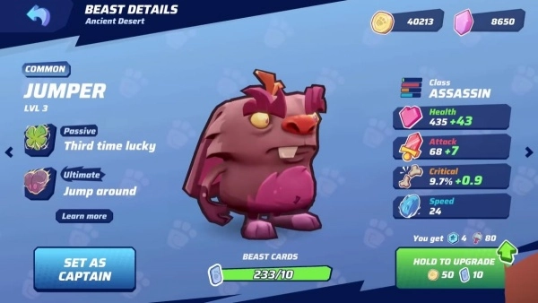 玩家可以收集各式各样的野兽角色,借助升级、强化以及解锁技能的方式,构建出不同类型的战术搭配,从而打造属于自己的专属作战体系。