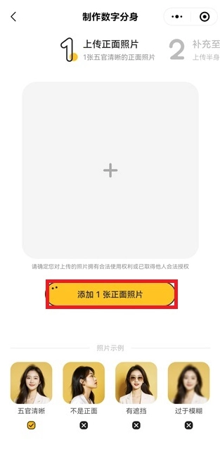 首先上传一张清晰的正脸照片。