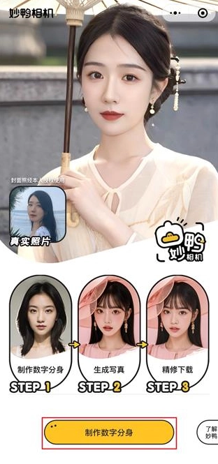 打开妙鸭相机进入首页,点击制作数字分身。