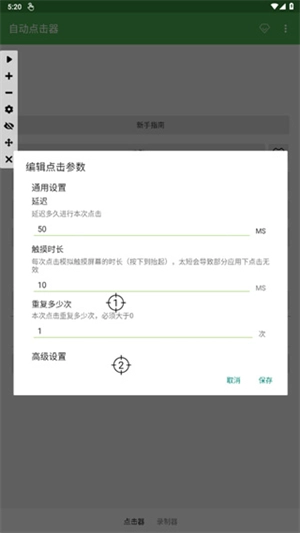 打开自动连点器,然后长按屏幕中间的位置点。