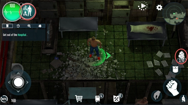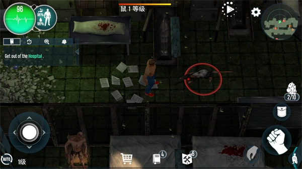 继续往前走,点击屏幕右下方的“拳头”图标使用徒手攻击,就能轻松击败丧鼠。
