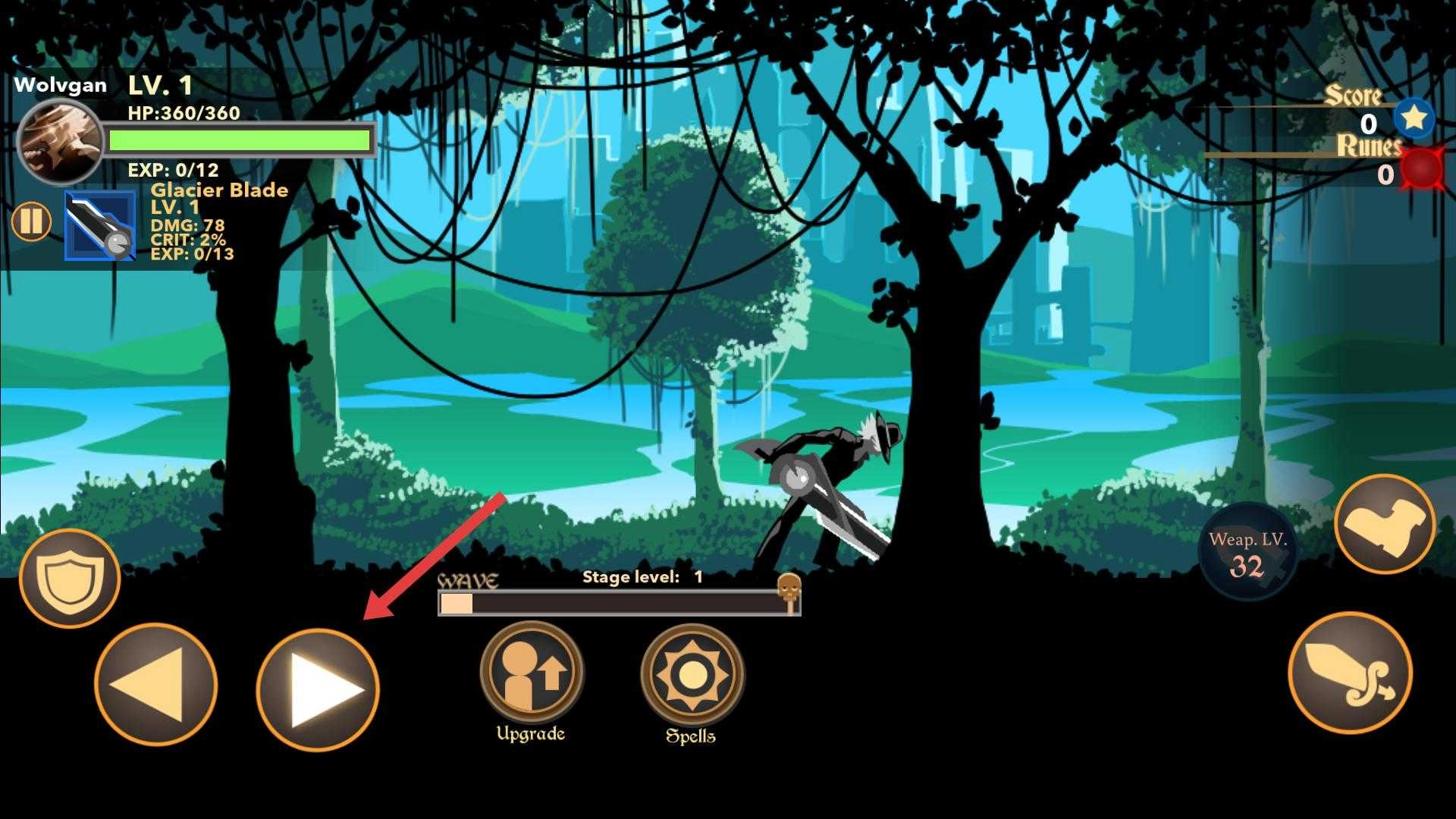 4、战斗获取符文后,点击【Upgrade】进入升级界面,可花费符文升级武器提升伤害和暴击,也可升级角色增加生命值,增强战斗能力。