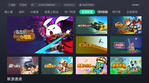 咪咕快游TV版聚焦丰富内容、便捷操作与强大技术三大核心,为众多游戏爱好者带来一站式高品质云游戏服务,全面革新家庭娱乐模式。作为专为大屏设计的云游戏平台,它融合前沿技术与海量内容,致力于为用户打造极致的云端互动娱乐体验,重新定义电视游戏场景,让您足不出户即可尽享主机级游戏乐趣。
