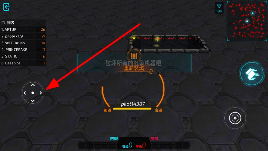 通过左侧的移动操控,指挥角色在场景里移动,灵活调整站位,前往各个区域,为体验游戏玩法和攻击敌方目标做好准备。