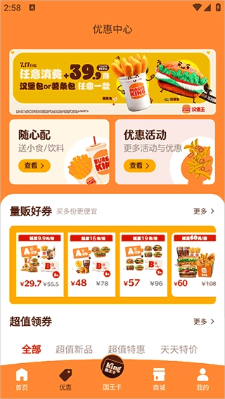 周三国王日:1+1仅需9.9,快乐畅享吃堡