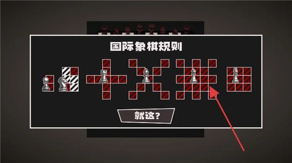 游戏规则展示页面,呈现“国际象棋规则”内容,通过简化的棋盘与棋子示意图进行说明,设有“就这?”按钮,引导用户进一步了解规则详情。