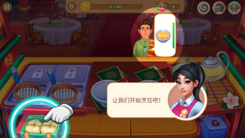 接着便会进入教学关卡,首位顾客会随即出现,玩家能够依据顾客气泡里的提示来开展操作,着手烹饪面条。