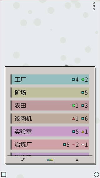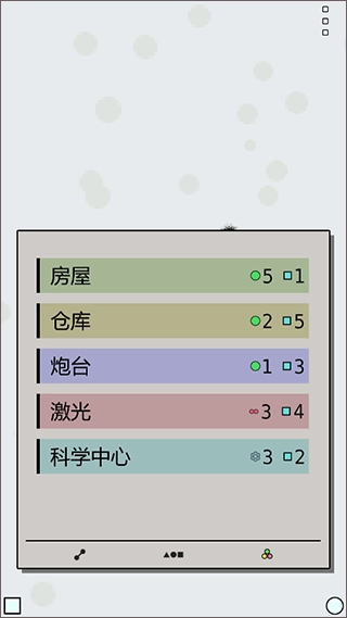 运用圆圈、三角形、方块这类基础图形来对应各类建筑与资源,让界面呈现出简洁且直观的效果。