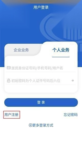 3、在个人业务页面找到用户注册并点击