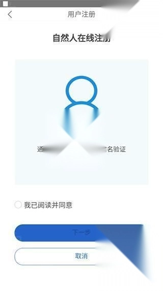 4、进入注册页面,通过人脸识别进行实名验证,跟随软件引导完成注册