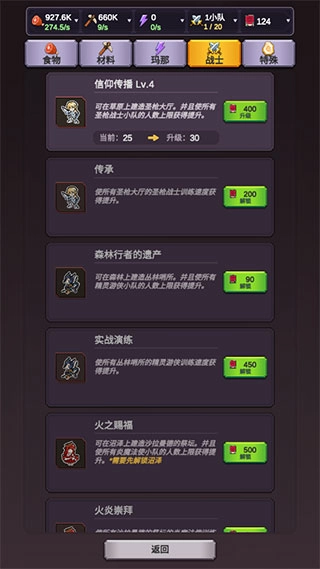 游侠这个兵种的存在感确实不太强,感觉定位应该是输出型?前期的时候还能凑一队兵增加数量,可到了30级左右,数值就明显跟不上其他兵种了,甚至在资源消耗相同的情况下,连作为肉盾的枪兵都比不上——技能打出去根本没什么效果。而且兵种升级特别耗资源,后期怪物的防御又超高,输出基本只能靠法师叠灼烧伤害。游侠本身防御还低,没法给法师挡伤害,赤精灵应该和它是同类型定位,但数值直接碾压游侠(后面的兵种还没出)。建议要么把游侠的攻击力调高一些,要么给它加个特技,比如优先攻击防御最低的目标之类的。