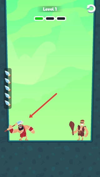 触发机关的操作方式是:借助左侧的装置来发射斧、石、矛等武器,以此攻击下方那个手持斧头的角色。