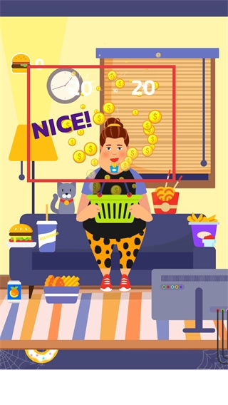 收集垃圾食品后,系统会给予金币奖励,同时屏幕上会出现【NICE!】之类的提示,以此来积累财富。