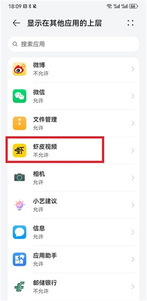 在授权界面,需找到【虾皮视频】并点击进入权限界面。