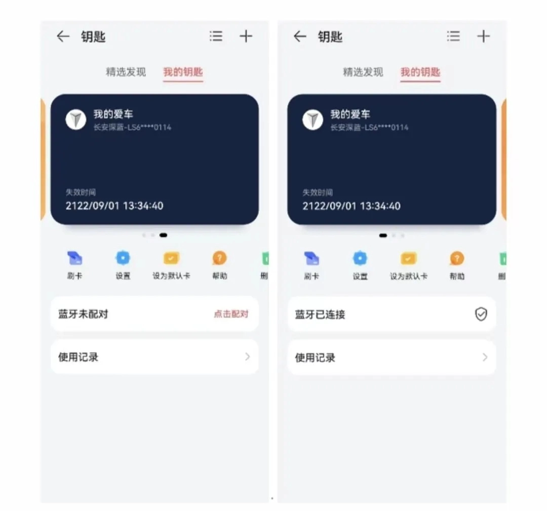● 若手机NFC刷卡失败,可将手机移开5厘米以上并停留1秒后重新刷卡;请勿将手机贴在后视镜上反复移动,以防划伤设备。此外,若深蓝App账号在其他设备登录、卸载App、清除深蓝App缓存或华为钱包数据等,可能导致手机内的钥匙卡片部分功能失效或被删除,需重新开卡才能再次使用。