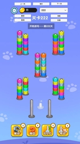 《螺母分类小游戏最新版》是一款操作简单又趣味十足的休闲分类闯关手游!游戏的核心玩法是将不同颜色的螺丝进行分类,完成后就能通过关卡挑战。这款游戏玩起来相当魔性,很容易让人沉浸其中、越玩越上头!在正版游戏里,玩家需要移动不同颜色和形状的螺丝,把相同的螺丝归置在一起并整齐排列,以此达成游戏目标。游戏总共有224个关卡,能让玩家尽情游玩很长时间。每通过一个关卡,还会获得相应奖励,这些奖励可以用来购买皮肤、道具等物品!