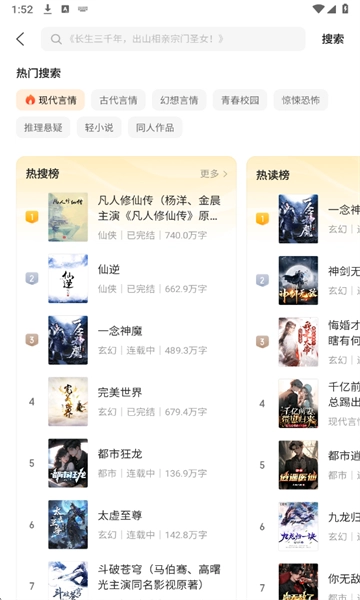 你可以在书城挑选自己喜欢的小说,也能直接点击页面上方的搜索框来查找。