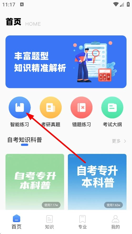 1、进入继教云课堂软件首页,点击智能练习,可开启练习模式。