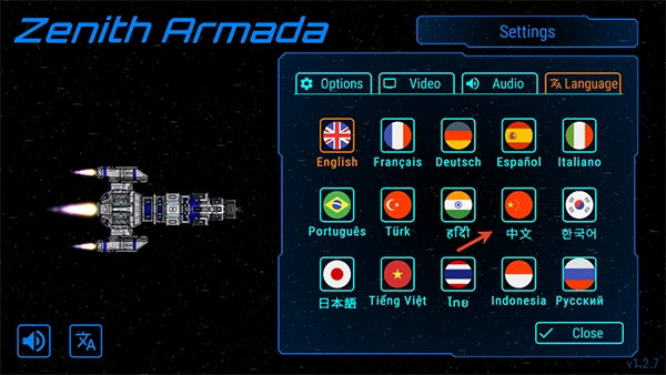 进入天际舰队最新版游戏内我们点击做下角的语言。